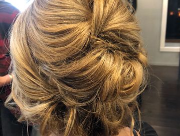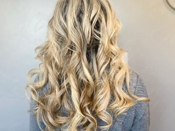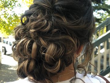 Choose from 3 styles. updo, half up or soft, beachy waves or braided with spiral curls . For added fullness extensions are available for purchase. Take it from daytime to evening.